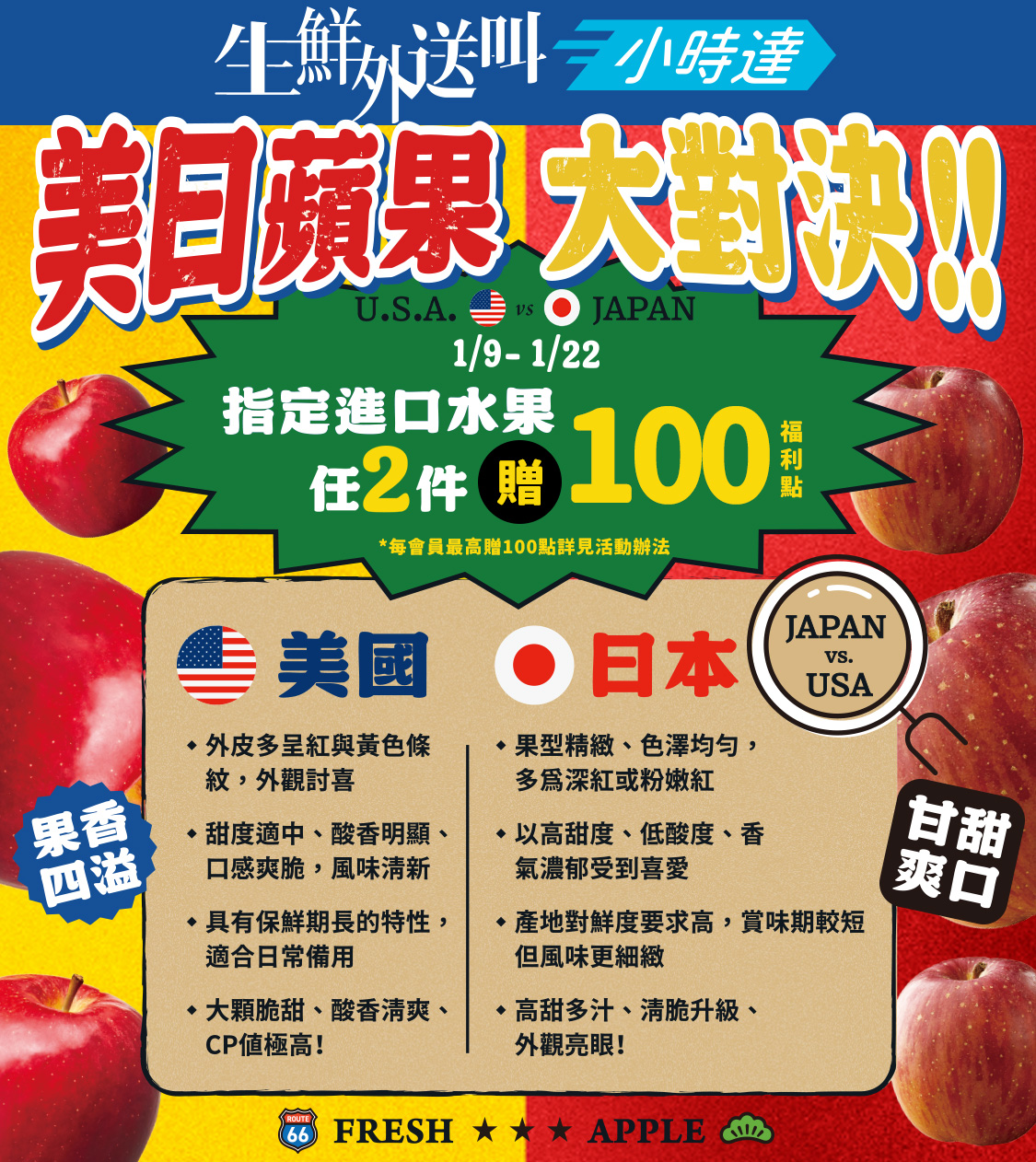活動名稱: 小時達指定進口水果任兩件贈100點(每會員最高100點)