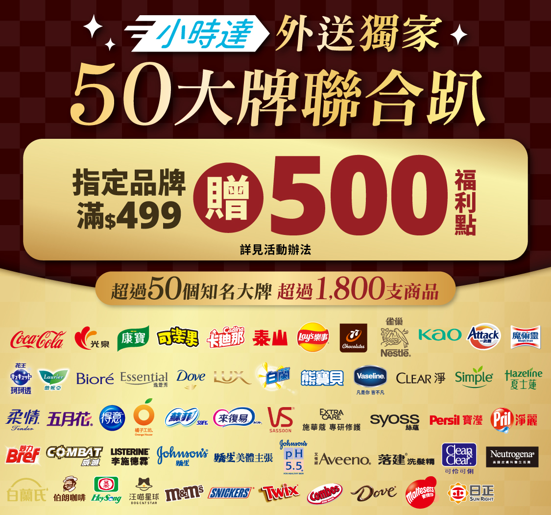 活動名稱: 小時達品牌聯促-指定品牌滿499贈500福利點活動