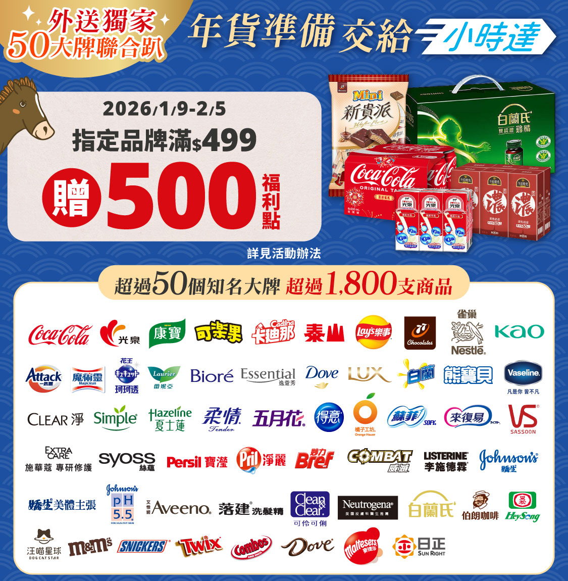 活動名稱: 小時達品牌聯促-指定品牌滿499贈500福利點活動