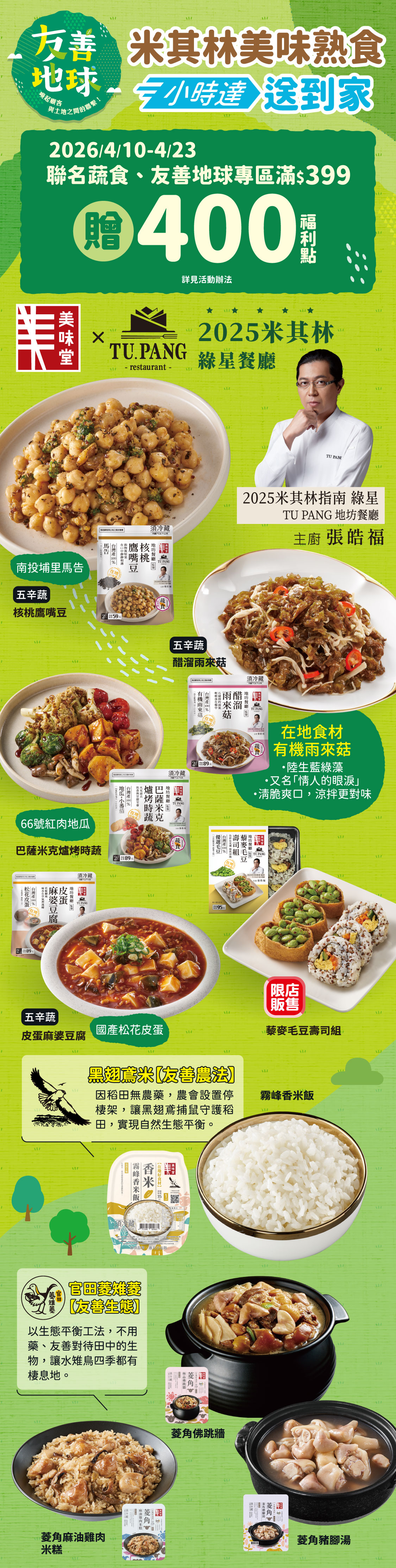 美味堂聯名米其林綠星地坊餐廳 滿$399贈400點
