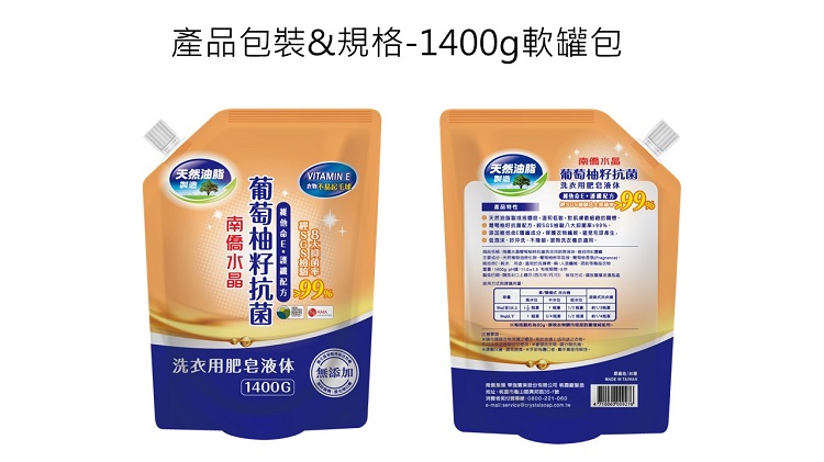 南僑葡萄柚籽抗菌洗衣液體皂-維他命E護纖配方 1400g