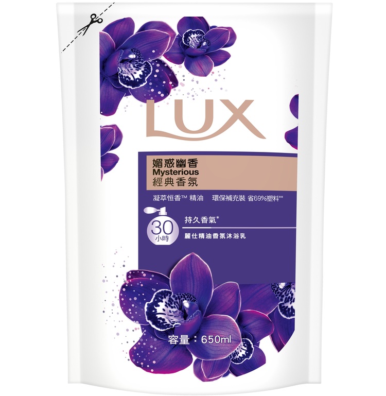 | 產品特色 | LUX麗仕精油香氛沐浴乳 媚惑幽香 擷取墨蘭花盛放的芬芳 融萃於植物香薰精油 釋放神秘迷人魅力 散發誘惑香氣一整天 凝萃恒香™ 精油 30小時 持久香氣* *聯合利華消費者測試數據。香味持續時間可能因人而異 國際品質香氛 無添加Parabens防腐劑 前調: 甜美紅醋栗 中調: 誘惑墨蘭花 後調: 高貴琥珀 x 溫暖檀香 |