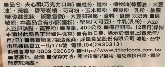 | 製造廠商 | 成偉食品股份有限公司 (04)2630-3131 台中市梧棲區自立一街178號 週一至週五08:00-17:00 |