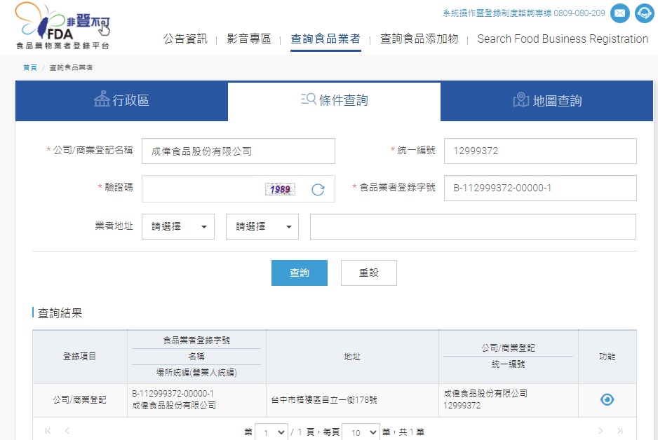 | 國内負責廠商 | 成偉食品股份有限公司 (04)2630-3131 台中市梧棲區自立一街178號 週一至週五08:00-17:00 |