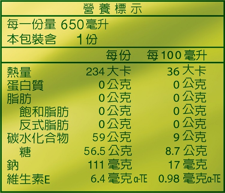 | 食用方式 | 即飲飲料,開封即可飲用 |