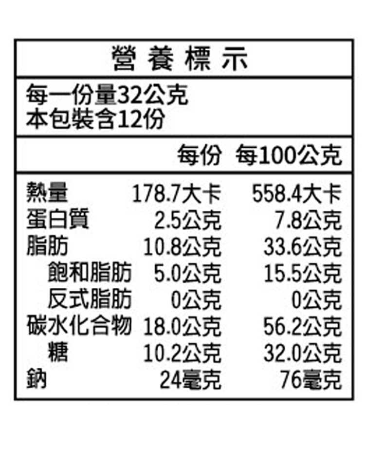 | 過敏源註記 | 本產品成分含有蛋、麩質穀物製品,食物過敏者請留意 |
