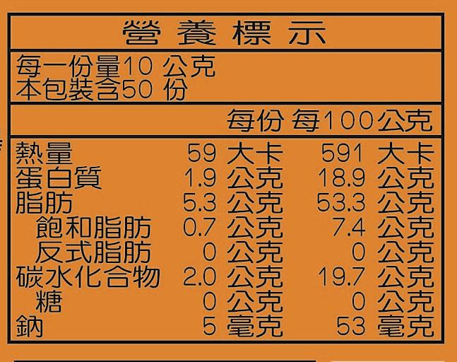 | 製造廠商 | 金潤益食品工業有限公司 (04)23504339 台中市西屯區協和里工業區32路67之1號2樓 周一至周六08:00-19:00 周日08:00-12:00 |