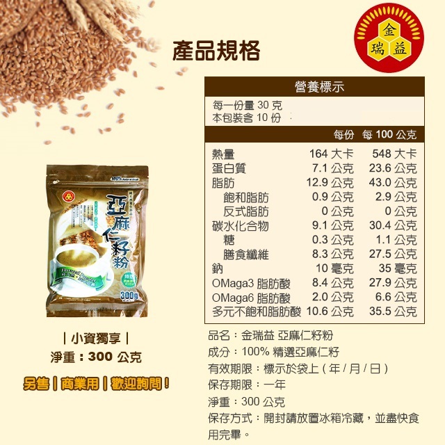 金瑞益亞麻仁籽粉 300g