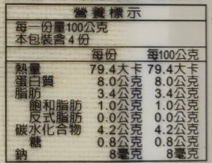 | 內容物(成分) | 水.非基改黃豆.豆腐凝固劑(硫酸鈣).乳化劑(脂肪酸甘油脂) |
