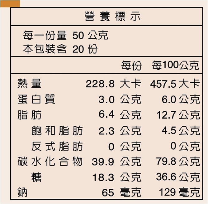 | 食用方式 | 將50公克約三茶匙的麵茶置於杯中,再加入熱開水約200CC後,攪拌均勻即可享用。 |