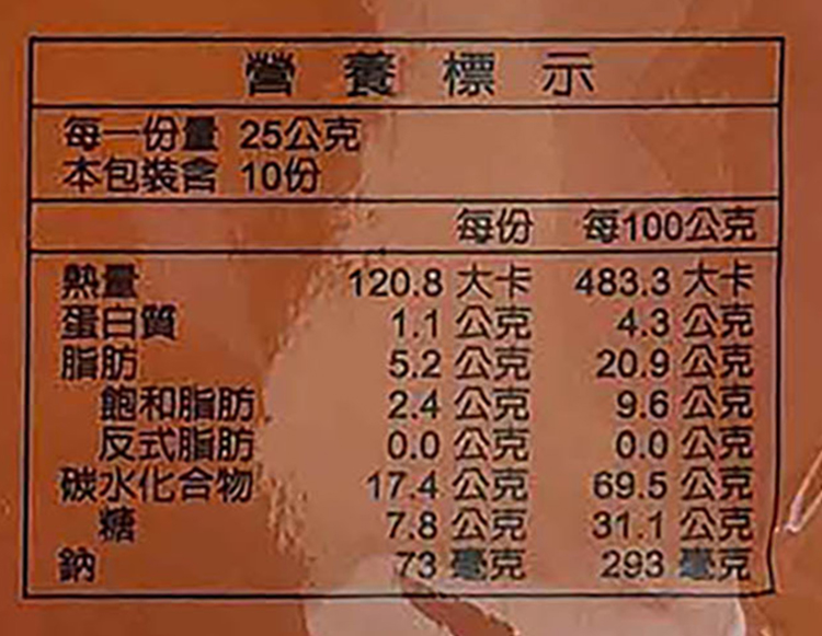 | 過敏源註記 | 本產品含奶類、麩質之穀類及其製品,不適合其過敏體質者食用 |