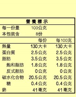 | 食用方式 | 氣炸鍋:依個人需求,將適量產品放入氣鍋中,設定氣炸鍋溫度至200度C,時間至13-15分鐘,即可取出享用. |