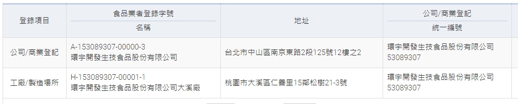 | 食品業者登錄字號 | A-153089307-00000-3^無效期 H-153089307-00001-1^無效期 |