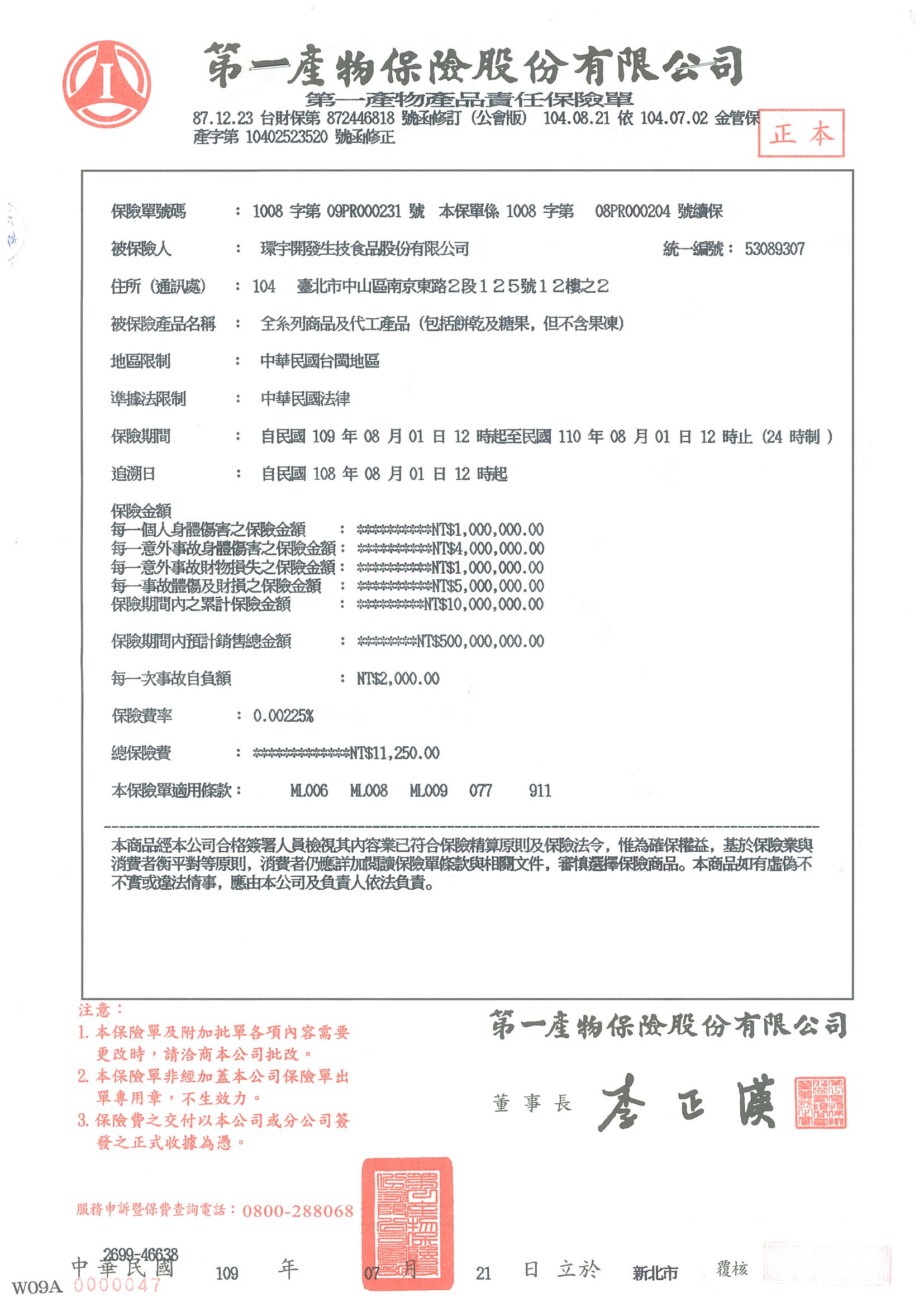 | 產品責任保險字號 | 1008字第09PR000231號 2021/08 |