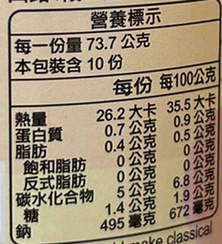 | 內容物(成分) | 水,蕃茄,蘑菇,乙醯化己二酸二澱粉,鹽,砂糖,香菇粉,酵母抽出物,鮮保利(醋酸鈉(無水)胺基乙酸,反丁烯二酸,葡萄糖酸-δ內酯,酵素制劑)洋蔥粉 檸檬酸,黑胡椒粒,巴西里,玉米纖維(玉米纖維,卵磷脂,維生素E(抗氧化劑)己二烯酸鉀(防腐劑)5'-核糖核苷酸鈣(5’-次黃嘌呤核苷磷酸二鈉,5’-鳥嘌呤核苷磷酸二鈉)異抗壞血酸鈉(抗氧化劑) |