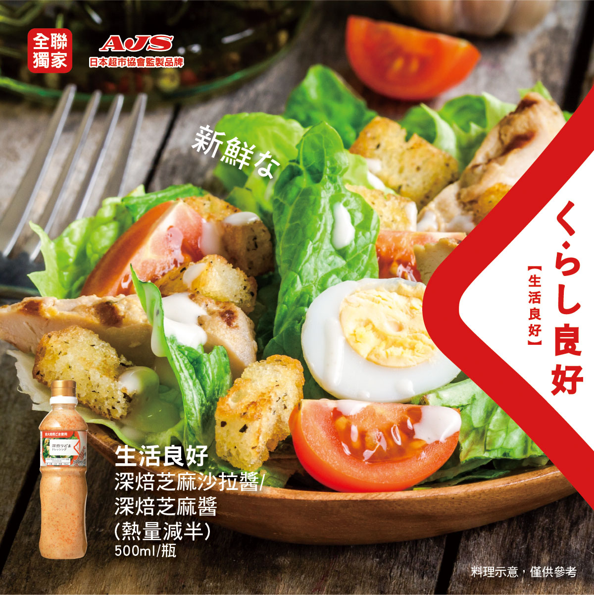 | 商品說明 | 使用滿滿的烘培芝麻,將其香氣及濃郁口味完美的融合在一起,不管是搭配沙拉或涮涮鍋都非常合適。 |