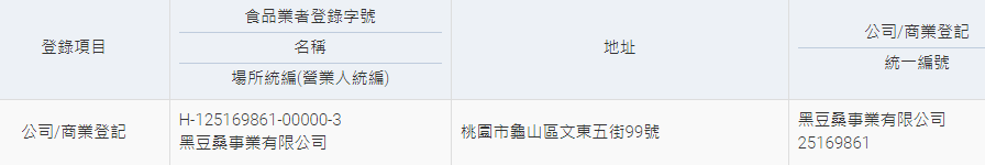 | 製造廠商 | 黑豆桑事業有限公司 0800-253399 桃園市龜山區文東五街99號 週一至周五09:00-18:00 |