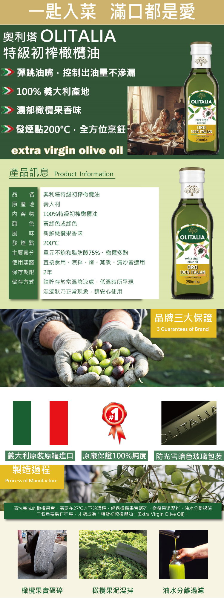 | 商品說明 | 濃郁橄欖果香味,全方位烹飪,彈跳油嘴控制出油量不滲漏 |