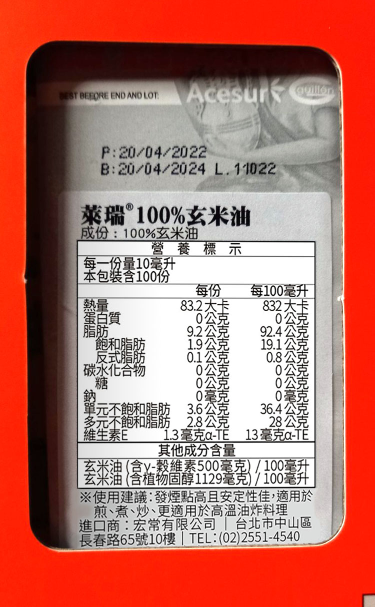 | 內容物(成分) | 100%玄米油 |