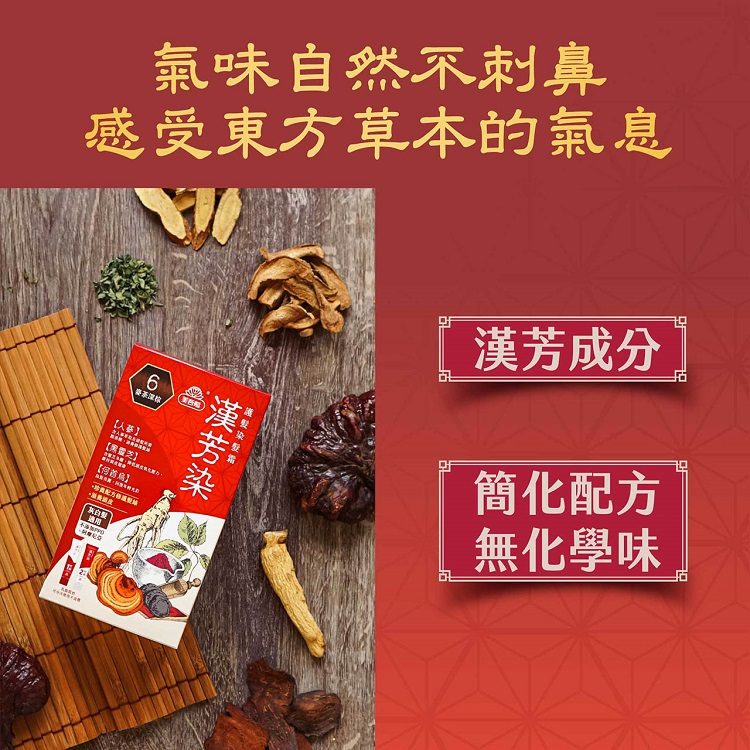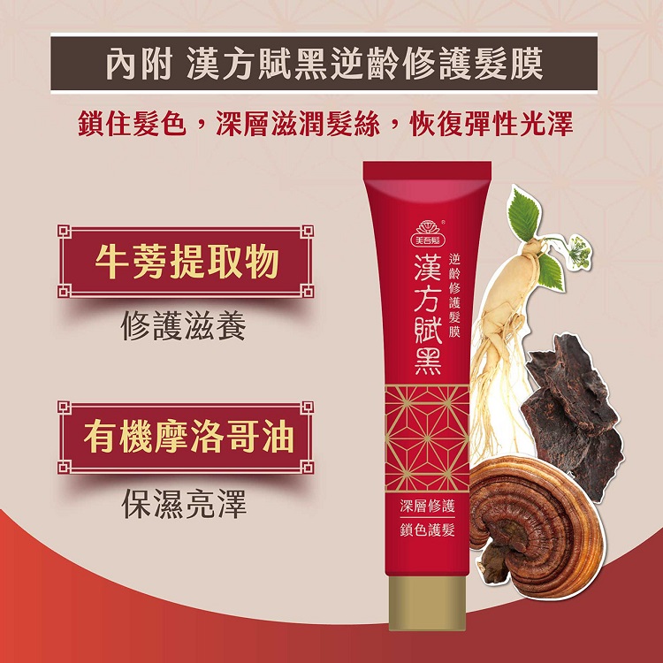 | 商品說明 | 1. 特選漢方人蔘. 五味子. 黑靈芝. 何首烏, 滋補每吋珍貴髮絲 2. 無PPD. 阿摩尼亞. 重金屬以及化學異味 3. 專利多功能染髮梳, 滿足所有類型染髮需求 4. 附贈賦黑逆齡髮膜, 回復亮麗秀髮 |