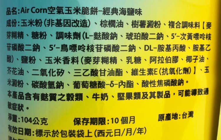 | 商品說明 | 會呼吸的空氣玉米脆餅 |