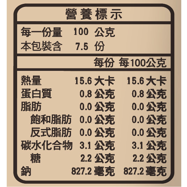 | 內容物(成分) | 水、菌菇湯【水、蔗糖、食鹽、酵母抽出物、高麗菜抽出物、蘑菇抽出物、DL-胺基丙酸、牛肝菌、香料】、紅棗、鹽、熟地片、當歸、枸杞、黨參、參鬚 |