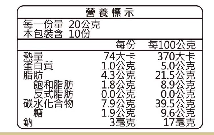 | 過敏源註記 | 本產品含有大豆、花生及其製品,不適合對其過敏體質者食用。 |
