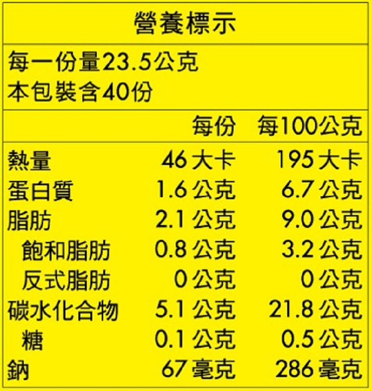 | 食品添加物名稱 | 調味劑(琥珀酸二鈉)、檸檬酸鈉、糊精、甜味劑(甘草萃)、調味劑(DL-蘋果酸) |
