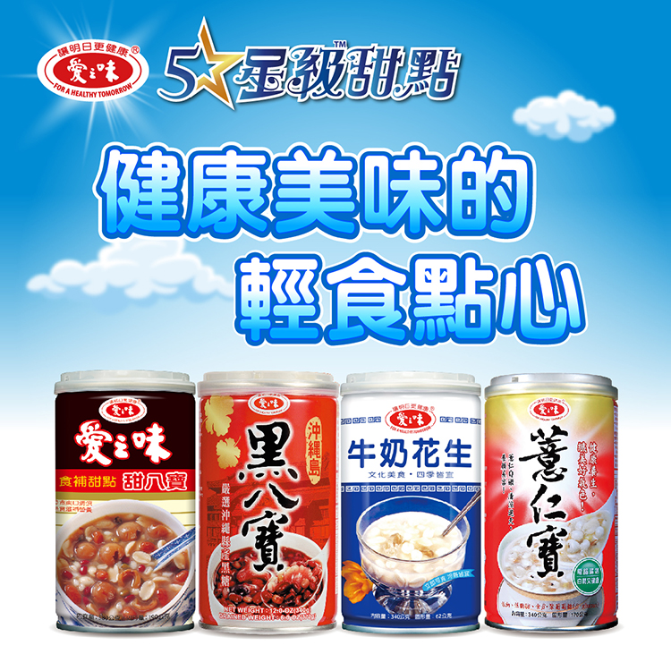 | 產品特色 | 1.甜點基本是屬內需傳統型產業,而愛之味在國內品牌形象良好,國人信賴度高,在技術開發及行銷推廣上有其優勢。 2.愛之味沖繩島黑八寶口感屬於日本風味,與一般市售八寶粥在口味上有所區隔。 3.黑糖屬嗜好性高之口味,依賴研發技術甚多,愛之味在此方向技術成熟,使得沖繩島黑八寶口感甜而不膩。 4.黑糖含鈣、鐵等礦物質和維生素等,營養價值高;由於黑糖的礦物質比一般糖品高,相對甜度比一般糖品低。 5.愛之味沖繩島黑八寶所使用的黑糖,是來自日本沖繩,純天然無污染的溫暖氣候,以盛產甘蔗為原料的黑糖,是沖繩的特產之一。 6.沖繩黑糖特選沖繩白甘蔗,經過長達20天的熬煮,然後再冷藏10天後,經過沖繩的陽光曝曬20天,一共歷經長達50天的製作期。 7.嚴選八種珍貴穀物,保留真實的原味自然,並採用日本沖繩縣產黑糖,純淨自然、完全無任何添加,糖蜜的滋味入口即化,使得口感香醇、甜而不膩。 |