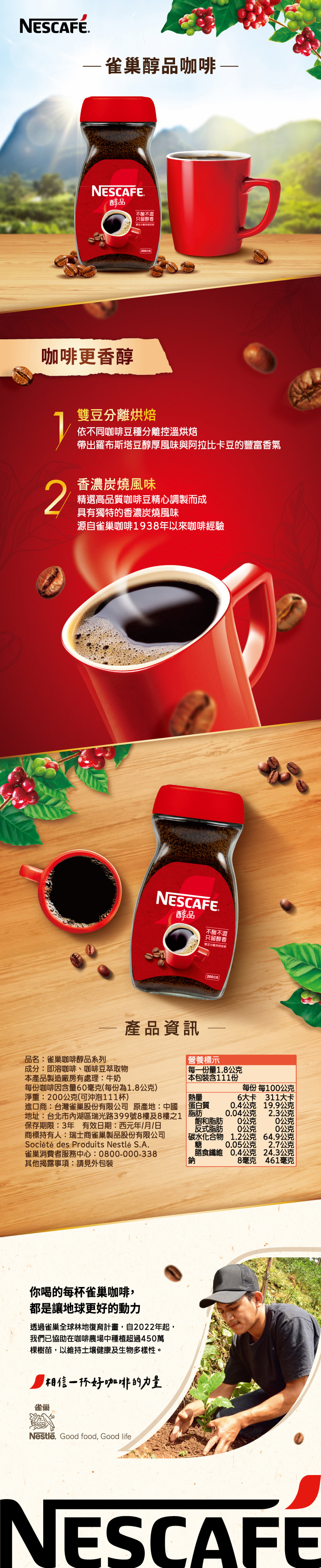 | 製造廠商 | 台灣雀巢股份有限公司 0800-000-338 台北市內湖區瑞光路399號8樓 週一至週五上午09:00-12:30/下午13:30-18:00(週五至17:30),例假日除外。 |