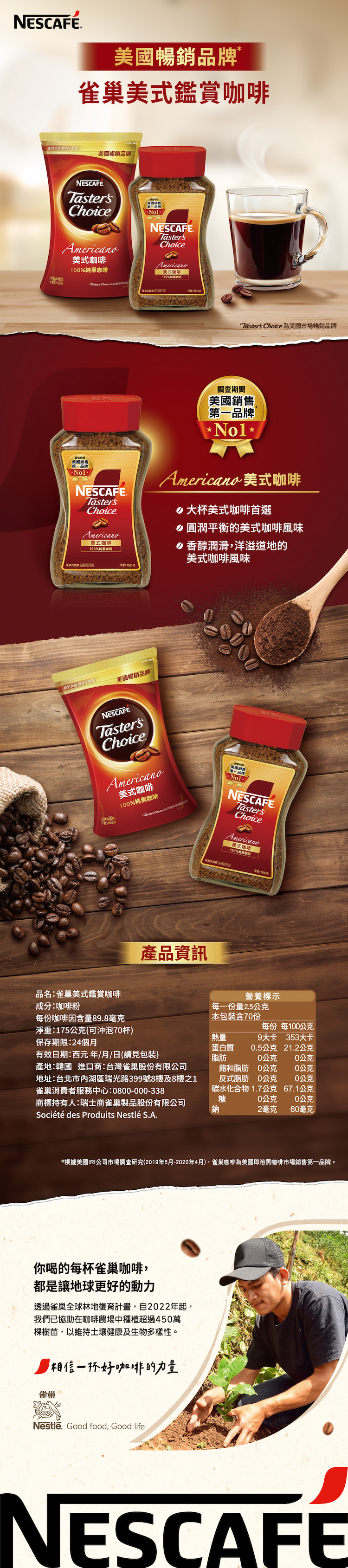 | 商品說明 | ◆純正美式咖啡,濃淡可自由調整 ◆咖啡口感溫潤,平衡順口喝得到 |