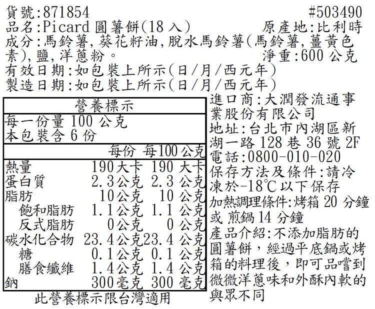 Picard圓薯餅 600g(18入)