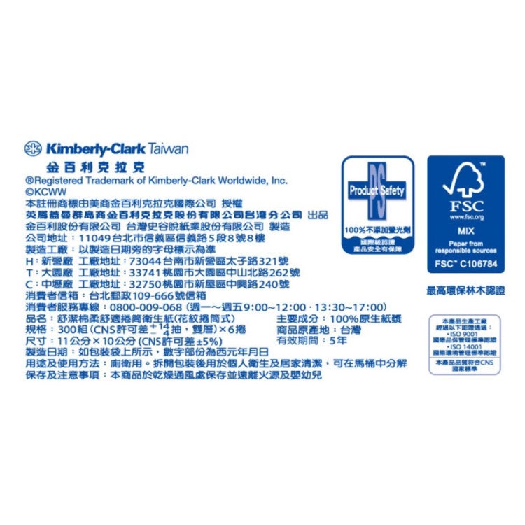 | 製造廠商 | 英屬蓋曼群島商金百利克拉克股份有限公司台灣分公司 0800-009-068 台北市信義區信義路五段8號8樓 9:00-18:00 |