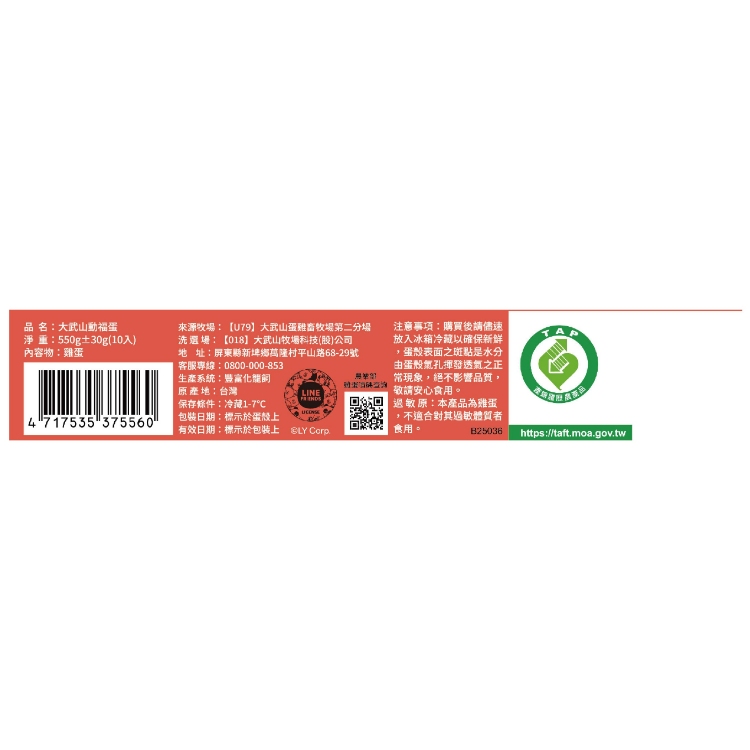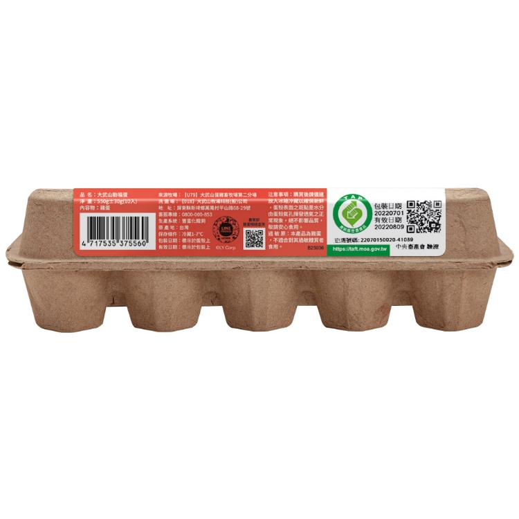 | 商品說明 | 大武山動福蛋蛋黃高挺、蛋白濃稠,全程冷藏確保新鮮,歐盟規格洗選管控。 |