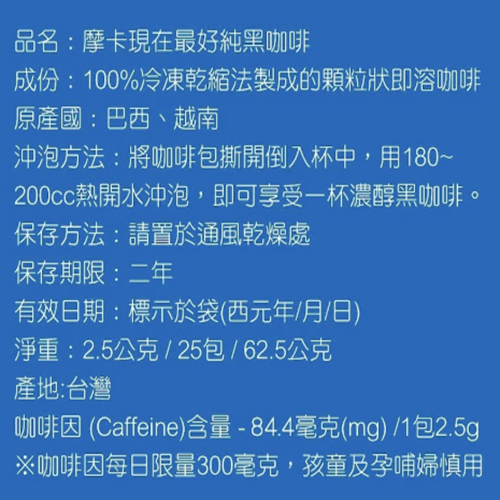 摩卡現在最好純黑咖啡 2.5公克x25包