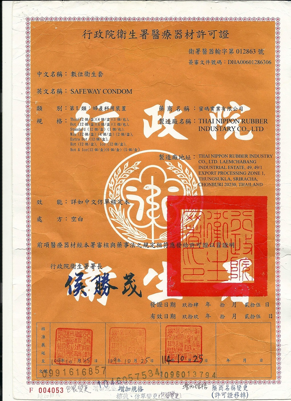 | 硬體及耗材標示 | LATEX天然乳膠、潤滑劑 |