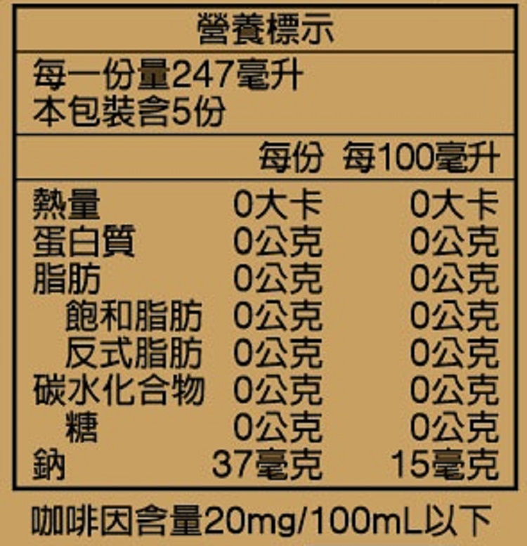 | 內容物(成分) | Water水,Tea Leaf茶葉,Artificial Flavor人工香料, Vitamin C維生素C(Antioxidant抗氧化劑),Sodium Bicarbonate碳酸氫鈉 |