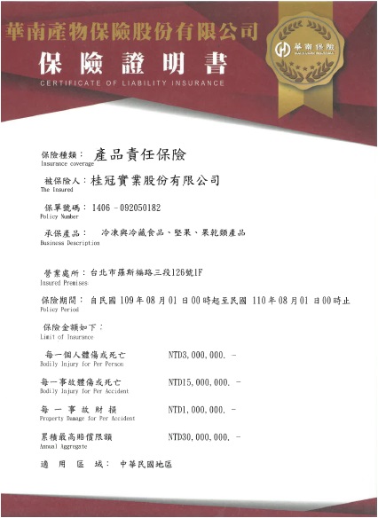 | 產品責任保險字號 | 保險字號 有效日期2021/08/01 |
