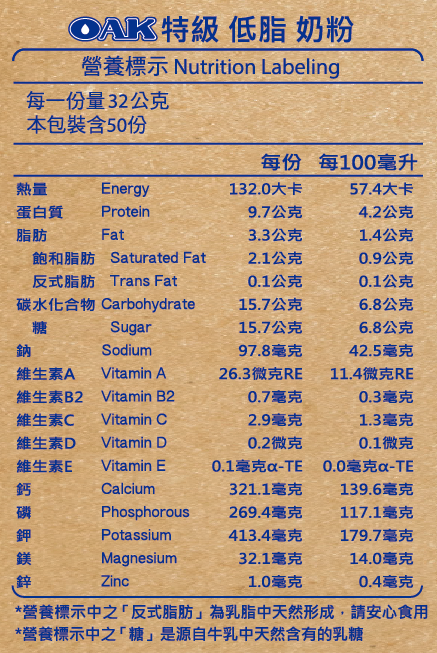OAK特級低脂奶粉 1.6kg