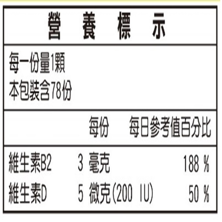 | 攝取量 | 每日2次,每次1粒,餐後食用,多食無益。 |