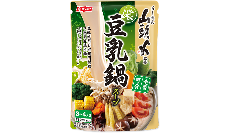| 產品特色 | 全素的豆乳鍋,以香醇的豆乳為基底,搭配多種蔬菜熬製,口味甘甜滑順,香濃程度與經典豚骨湯底相當。搭配蔬食、豆腐一起烹煮,健康又美味。 |