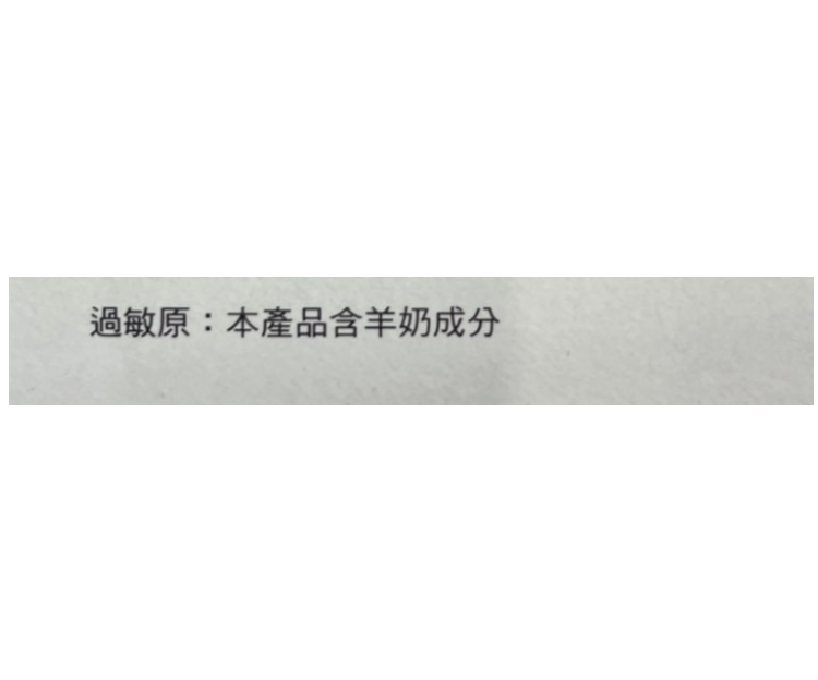 | 過敏源註記 | 過敏原:本產品含羊奶成分。 |