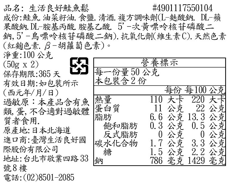 | 其他詳細說明 | 生活良好鮭魚鬆 |