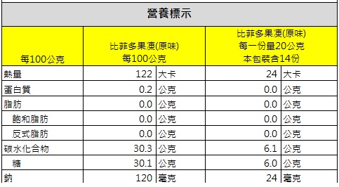 | 國内負責廠商 | 台灣比菲多食品股公司 0800070072 台中市西屯區市政北二路282號29樓 周一至周五0900-1700 |