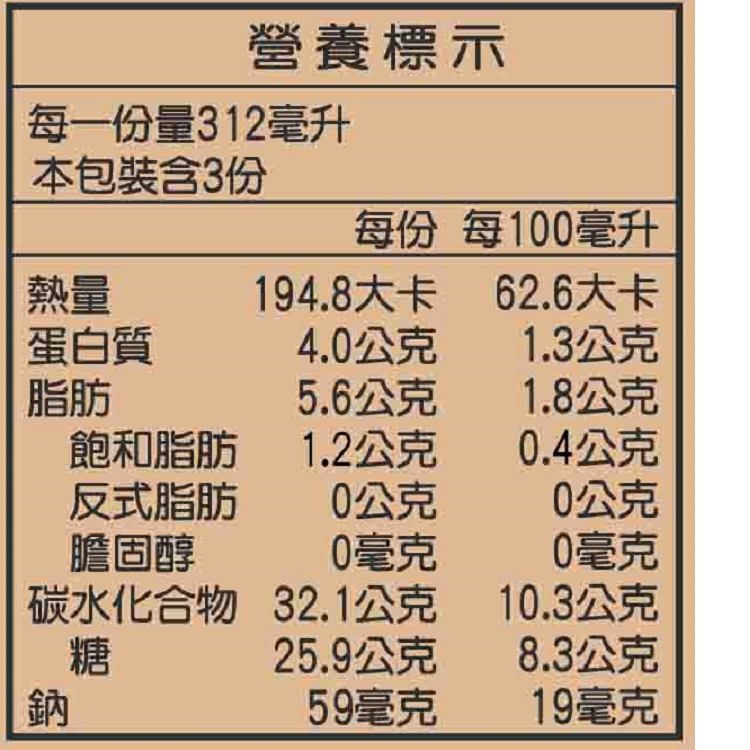 | 製造廠商 | 光泉食品股份有限公司 (02)8751-8788 台北市內湖區瑞光路502號4樓 星期一至星期五0930~1730 |