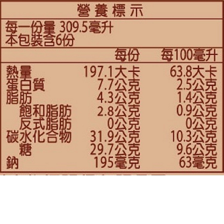| 製造廠商 | 光泉食品股份有限公司 (02)8751-8788 台北市內湖區瑞光路502號4樓 星期一至星期五0930~1730 |