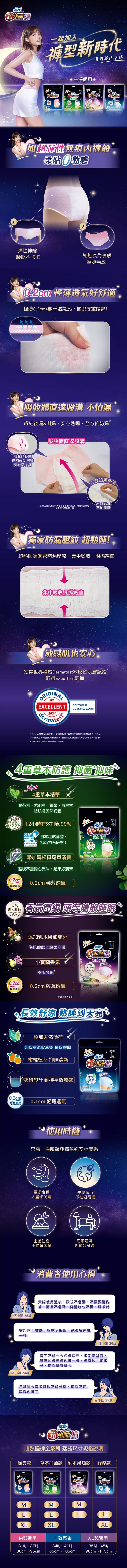 | 產品特色 | 添加乳木果油成分 小蒼蘭香氣 全方位防漏 純棉內褲般柔貼 |