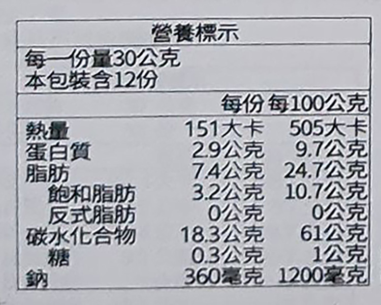 | 過敏源註記 | 本產品含有質物類、魚類、雞蛋、大豆 及其製品。 外包裝中文營養標示數據乃依據衛福部食藥署公告之 包裝食品營養標示應遵行事項所換算 本產品添加防腐劑(苯甲酸鈉)乃是添加原料醬油裡所 殘留下來 |
