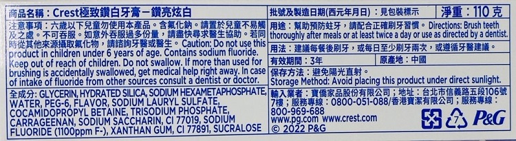 | 商品說明 | 美國銷售NO.1亮白牙膏品牌 5天去除最高達99%牙漬 添加熱感鑽白因子 |