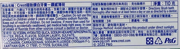 | 商品說明 | 美國銷售NO.1亮白牙膏品牌 5天去除最高達99%牙漬 添加熱感鑽白因子 |